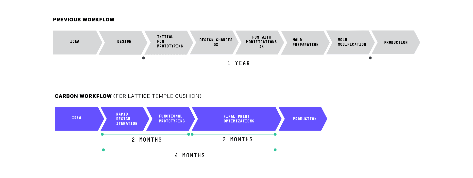 - Shortened product development from 1 year to 4 months (66%) by prototyping, designing, and producing with the Carbon DLS™ 3D printing process