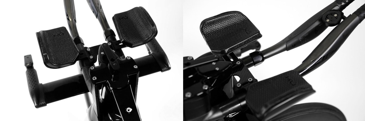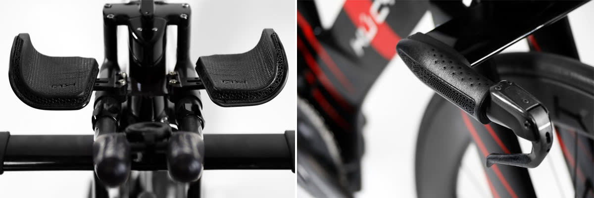 The grips and arm rest pads had to be comfortable for the rider for long periods but still be stiff enough to allow control of the bike from small inputs. The material had to stand the test of resisting sweat and the nutrition gels that inevitably get spilled during a race. Kú found that Carbon’s EPU 41 material was ideal for the elastomeric lattice grips and arm pads, and Carbon EPX 82 material for the rigid shifter clips.