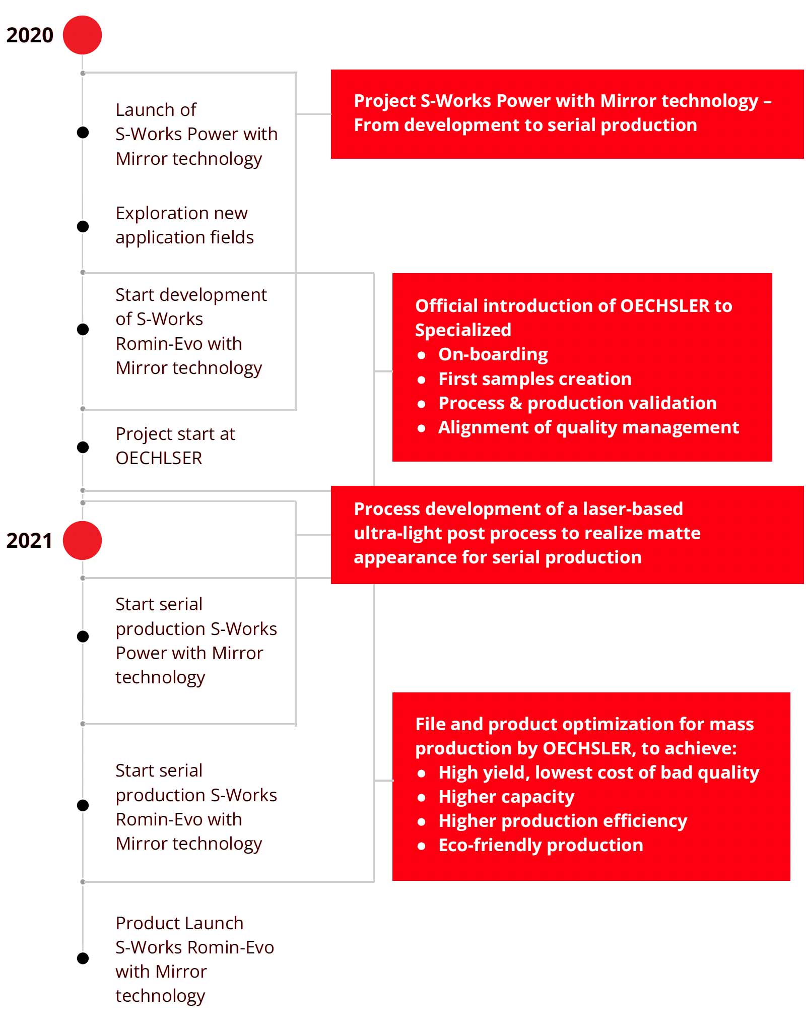 When Carbon, Specialized, and OECHSLER came together in the second half of 2020, the challenges facing the companies were great. Within four months, prototyping of the S-Works Romin Evo with Mirror was completed, and within another two months, serial production was industrialized to ensure product launch just ten months after OECHSLER’s onboarding.