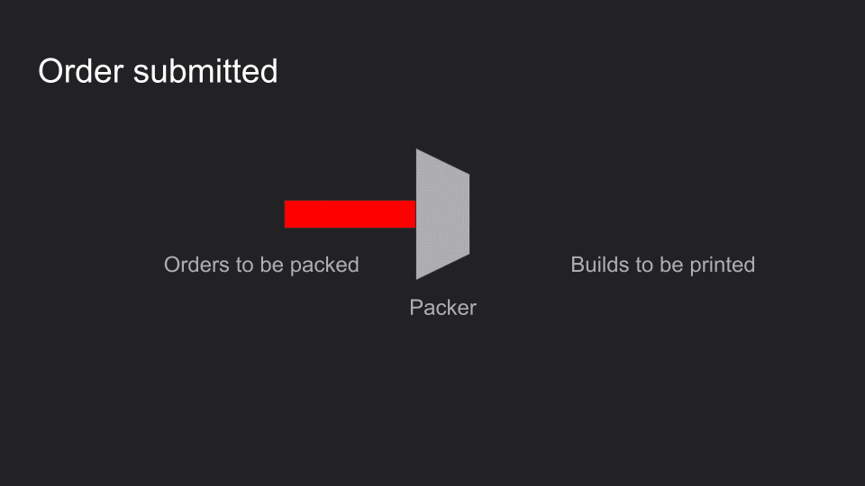 In theory, the packing algorithm looks roughly like this, with orders coming in on a rolling basis: